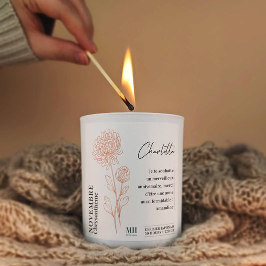 Fleur de Naissance - Novembre - Bougie personnalisable